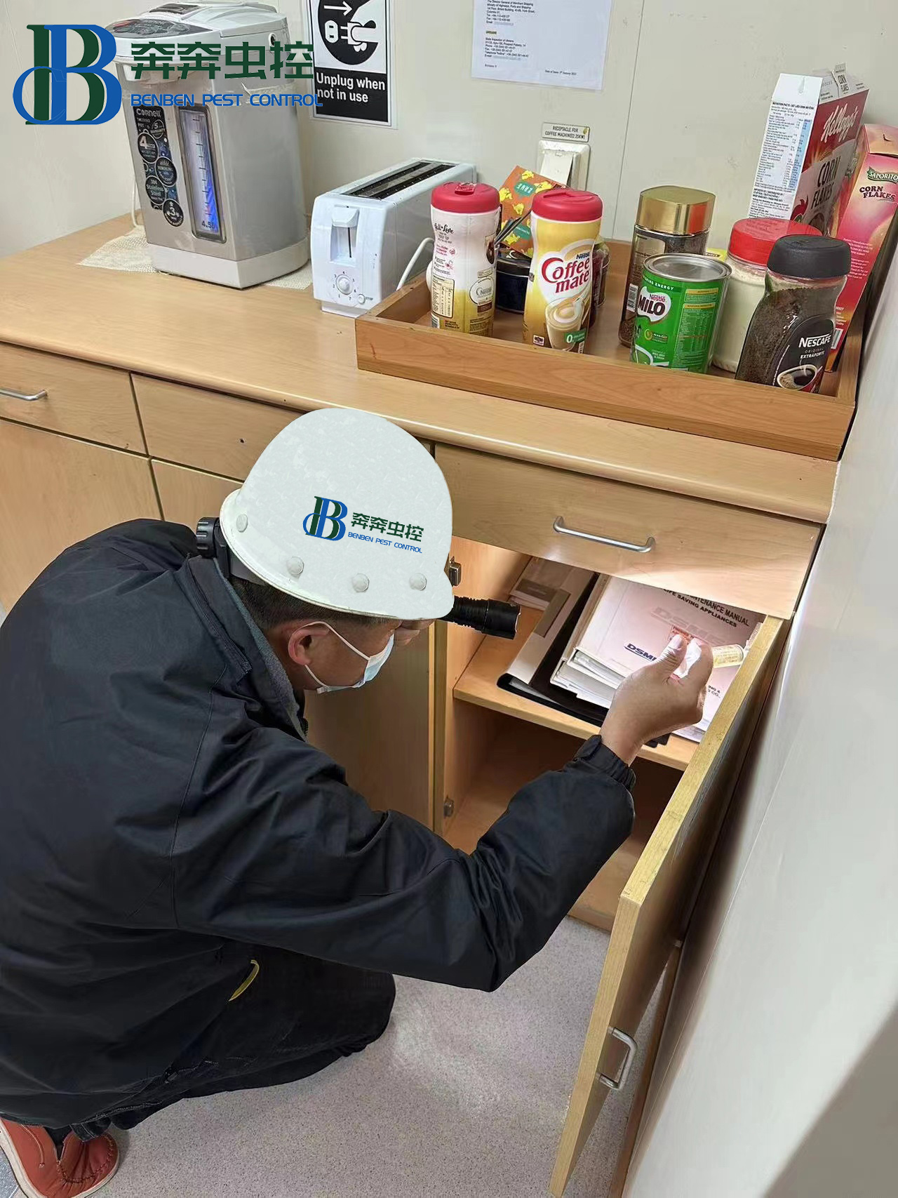 我们首先从蟑螂危害最严重的后厨操作间开始灭蟑螂,主要的布药点有:灶炉周围、冰箱底座、橱柜内部、后橱柜子内部、粮食和食品库及碗筷橱柜内部的角落和缝隙处等。